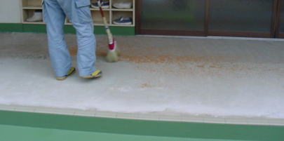 外部の廊下の防滑シ−トの貼り替え工事です。