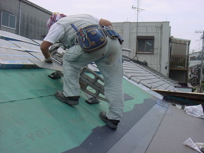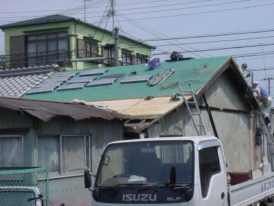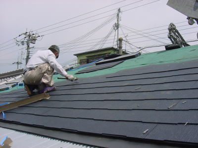 屋根瓦でしたが、家が老朽化しているため重量の軽い、スレ-ト瓦に葺きかえました。