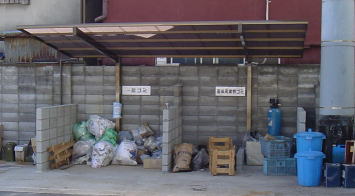 会社のゴミ捨て場です。雨に濡れるとゴミを収集しにくいため、屋根をつけることになりました。分別の為の仕切をブロックで作りました。