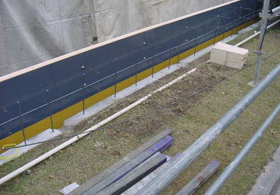 コンクリ−トの塀を解体した後、フェンスの土台の部分のコンクリ−トを流すための型枠を作ります。