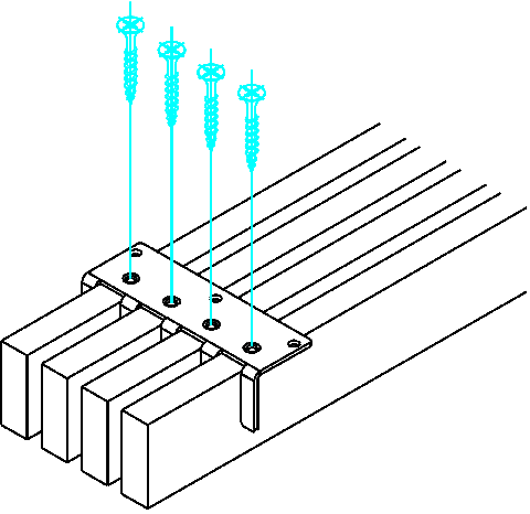 | ガラリの裏側になる方からビスを締めて、金物を桟に固定します。 |